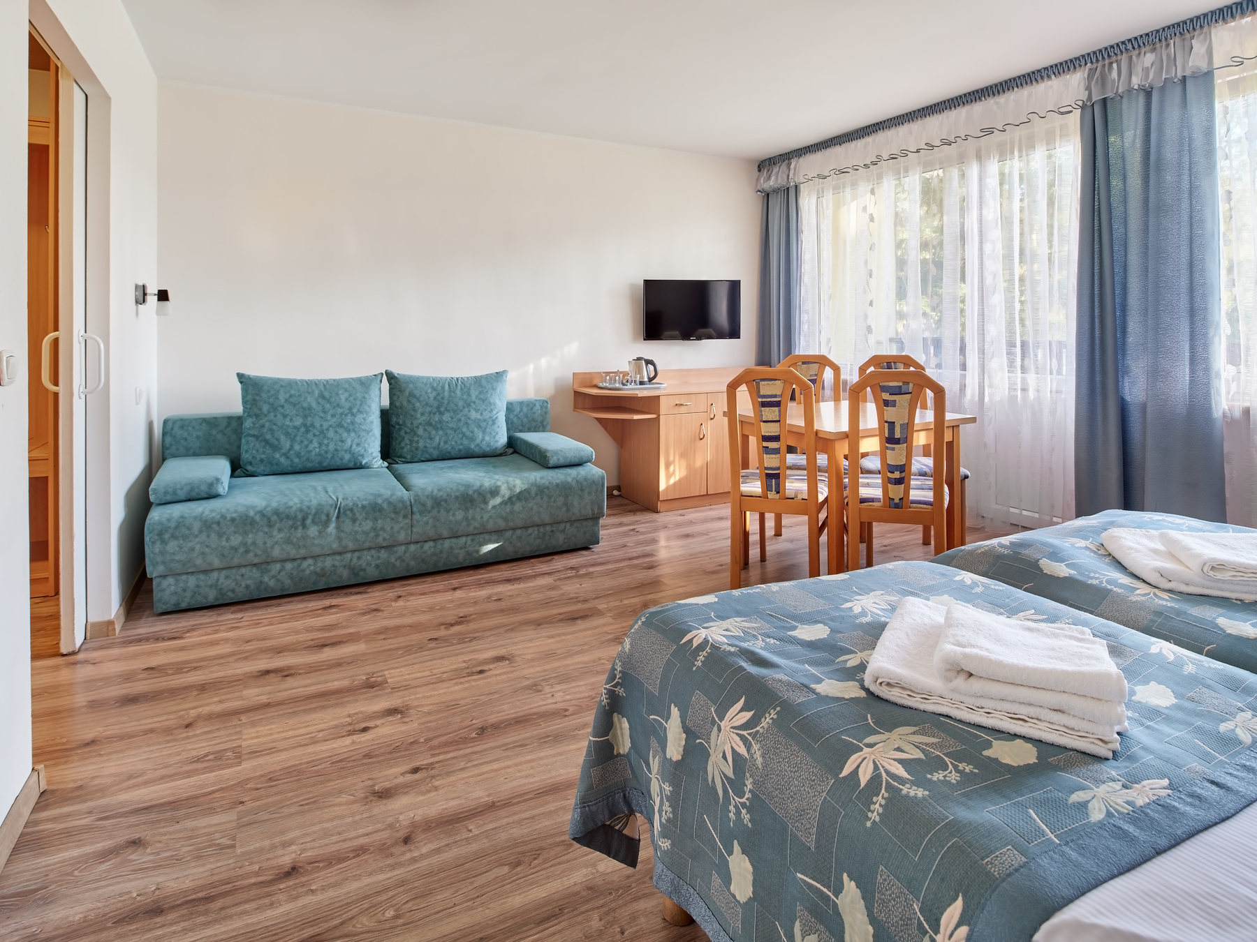 Pokoje PREMIUM dopłata 700 zł w terminach 20.06–29.08 w pozostałych terminach 600 zł.